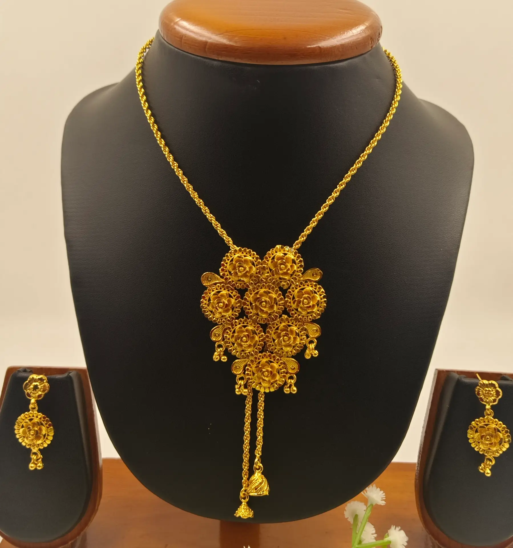 Add a graceful floral touch to your traditional jewellery collection with the Golap Tie Chain Necklace, inspired by the beauty of golap (rose) motifs. Designed with elegant floral detailing and a classic ethnic finish, this tie-chain necklace reflects timeless charm and feminine elegance.